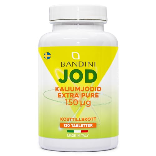 Bandini® POTASSIUMJODID Tabletter - EXTRA REN JOD - 150 mcg (PER TABLET) - 120 lätt sväljbara mikrotabletter -Kosttillskott med Jod KI, hög styrka, 100% vegansk, GMP, glutenfri, laktosfri, GMO-fri