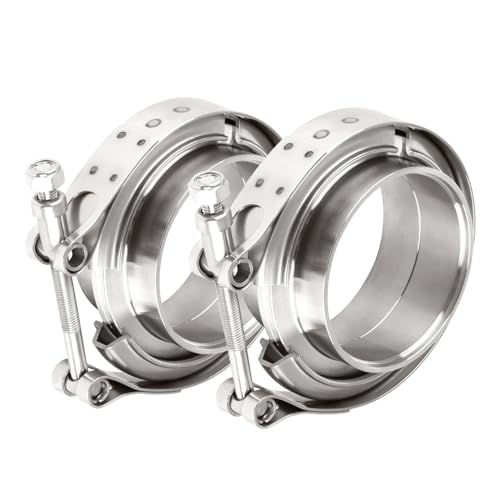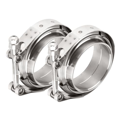RCCT 2 tums avgasrör V-band klämma rostfritt stål 304 kit – med 2 st hane och honfläns, 50 mm V-bandklämma, svetsringar och centreringsringar för turbos (51 mm))
