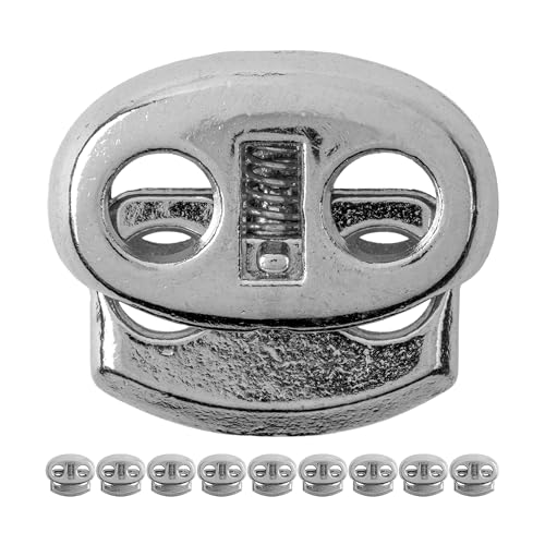 Sladdstopp, 2-håls, 10 st, av metall, i silver, för sladdar upp till Ø 4 mm, bandklämma jacka, kläder, ryggsäck, sladdstopp av gummi, snabbsnören, Tanka-set med sladdstopp