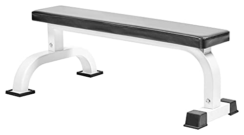 Bad Company Hantelbänk I Platt bänk 110 x 66 x 41 cm I träningsbänk för styrketräning hemma I vit – BCA-01