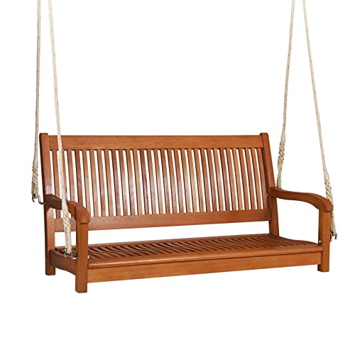 COSTWAY Gungbänk, 2-sits, veranda-gunga, kan belastas upp till 360 kg, hängande bänk, trädgårdsgunga för upphängning, hollywoodgunga av eukalyptusträ, gunga för terrass, trädgård och balkong
