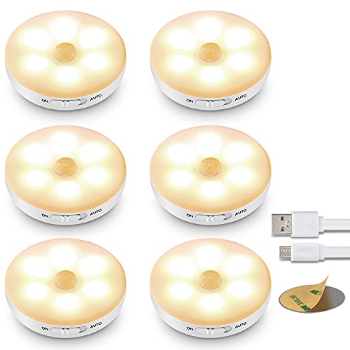 6 Förpackningar Rörelsesensorlampa Inomhus, laddningsbart batteridrivet LED-garderobsljus med 3M lim, fast på lampor för underskåp, bänk, hall, trappor (varmt ljus)