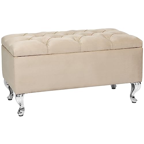 LORDLY Klädd sittbänk med förvaring MODIANO 81 x 42 cm - velour, bänk med förvaringsutrymme, kista för inomhus, hall, vardagsrum, sovrum (ben krom, beige)