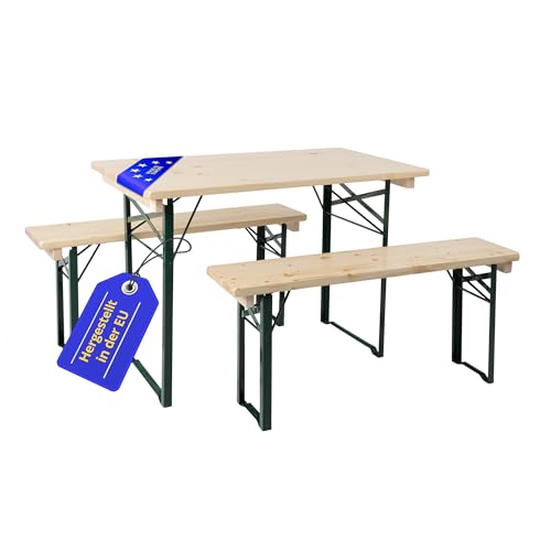 Stagecaptain BB-117 NT hjortträdgård öltält-set för balkong – kort version 117 cm längd – hopfällbart festtält-set 1 x bord 2 x bänk – sittset av trä – för inomhus- och utomhusbruk – natur
