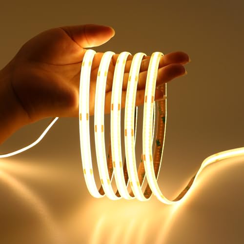 JOYLIT 6M COB LED Remsa 12V 3000K Varmvit Inomhus CRI 90+ 320LEDs/M Punktfri Enhetlig Ljusstyrke Dimmbar LED Strip för Köksskåp, Bänk, Hylla, Trappa (Endast LED-remsa)