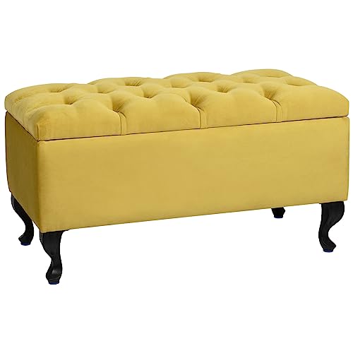 Klädd sittbänk med förvaring MODIANO 81 x 42 cm – velour, bänk med förvaringsutrymme, kista för inomhus, hall, vardagsrum, sovrum, max 100 kg (Ben svarta, senap)