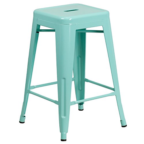 Flash-möbler hög rygglös kristallblå inomhus – utomhus bänk höjd pall 1-pack 63.5 x 43.18 x 41.91 cm Mintgrön
