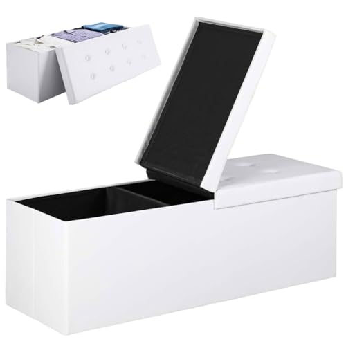 BAKAJI Sittlåda ottoman fotpall för sovrum bänk pall hopfällbar struktur eko-läder säte avtagbar vadderad storlek 38 x 115 cm (vit)