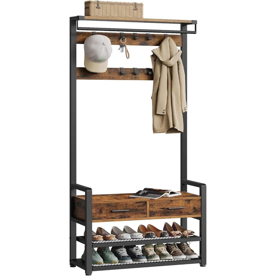 Vintagebrun Hallträd med Bänk & Skoförvaring