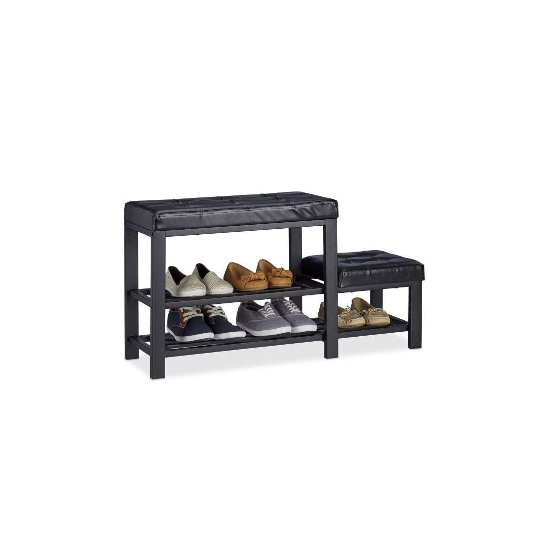 Skobänk, bänk med skoförvaring, lyftbar ovandel, entrébänk med avtagbar kudde, skohylla i trä med skoförvaring och dörrar för entré, vestibul, hall, garderob och garage (färg: Svart