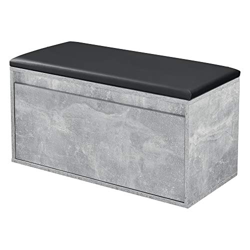 Bänk med Skoförvaring Sittbänk Skoskåp Vadderad Sittyta Konstläder Melaminbelagd Spånskiva Svart Betongimitation 80x39x45cm