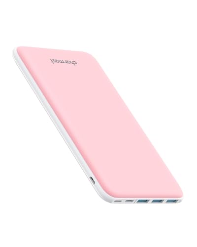Externt batteri 26800 mAh Power Bank bärbar Li-Polymer laddare godkänd i flygplan med 4 utgångar och 3 ingångar kompatibel med smartphone (rosa)