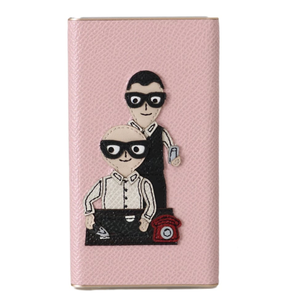 Dolce & Gabbana, Accessoarer , Dam, ONE Size, Läder, Rosa Läder Power Bank med Dgfamily Logo