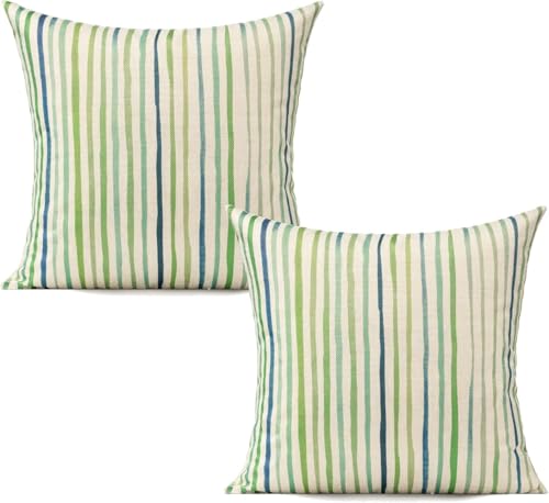 Alla leenden utomhus grön prydnadskudde överdrag för uteplats bänk trädgård veranda sunbrella möbler salvia linjer ränder kuddfodral dekorativa 16 x 16 set med 2 för soffa soffa