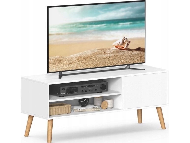 Vasagle Lowboard Tv-Skåp För Tv-Apparater Upp Till 55 Tum 120 Cm Tv-Bänk För Vardagsrum Industriell Design Vit