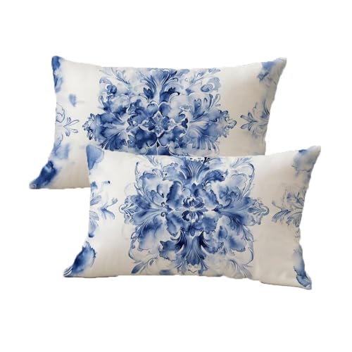 Utomhus kuddar blå kuddöverdrag 40 x 60 cm bondgård vattentät med osynlig dragkedja sammet soffa kuddfodral sommar trädgård dekorativa prydnadskuddar överdrag för säng vardagsrum bänk uteplats G-77