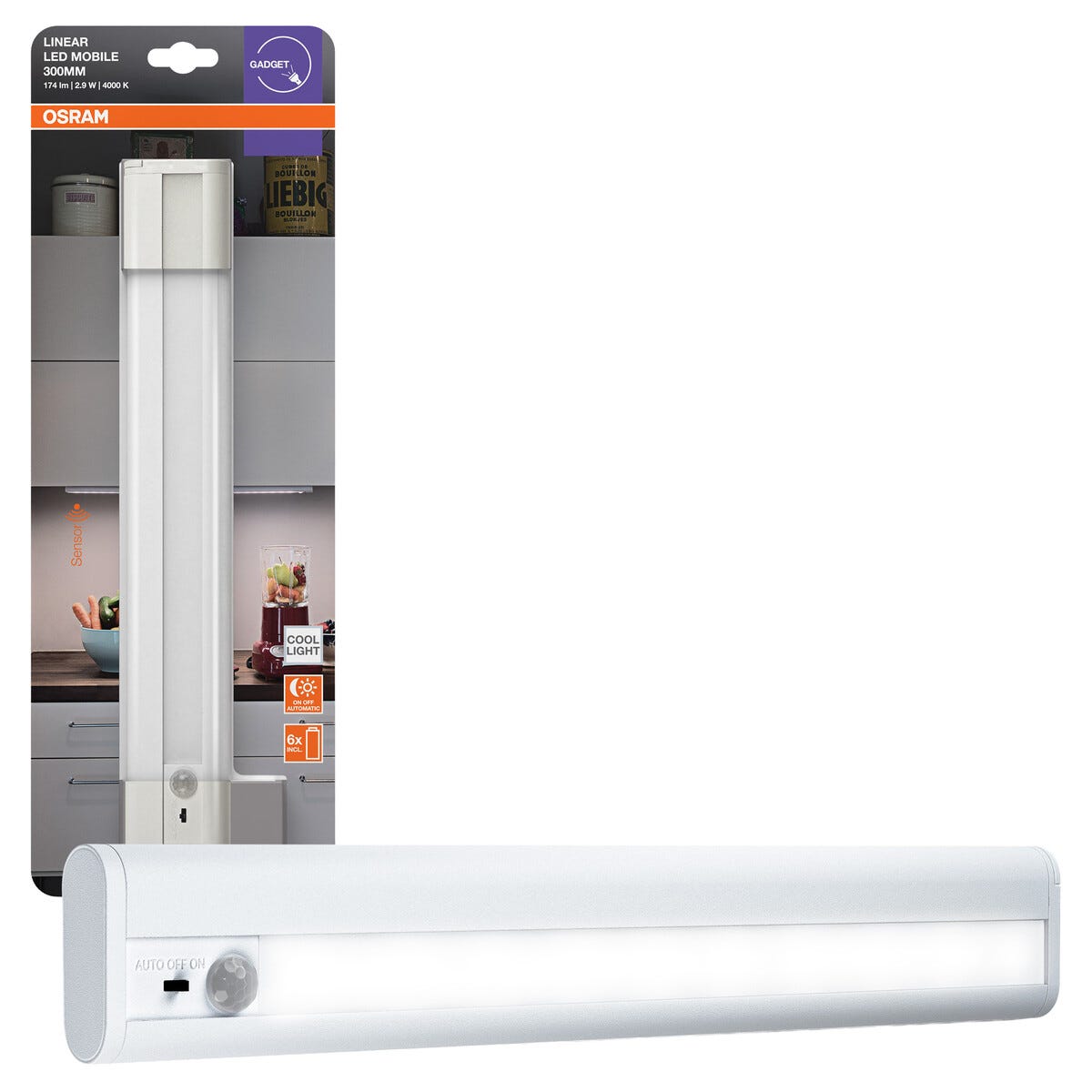 Osram Linear LED bänkbelysning med sensor batteridriven, 31,4 cm