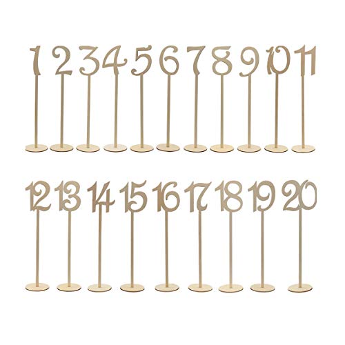 Youngine nummer 1 till 20 träbordsnummer med hållare bas för bröllop bankett festbord hem födelsedag dekoration (hög)