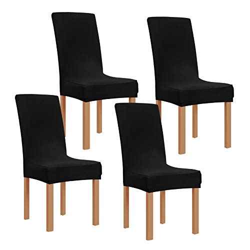 Obstal Svart stretch spandex matrumsstolskydd – set med 4 universella avtagbara tvättbara stolsätesöverdrag skydd för kök, ceremoni, bröllop, bankett, hotell och fest