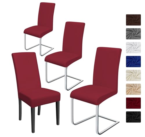 Stretch stolskydd elastisk modern stolsskydd spandex stretch stolskydd stol skydd bröllop fest bankett deko. Bi-elastiskt anpassat fodral, enkel skötsel och hållbar universal Pack of 4 Vinrött