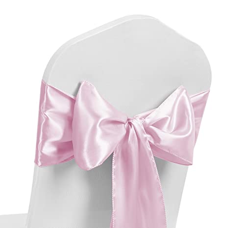 Satin stol skärp bredd FULLER rosetter stol band rosett baksida slips band bröllop bankett dekoration (babyrosa, 50)