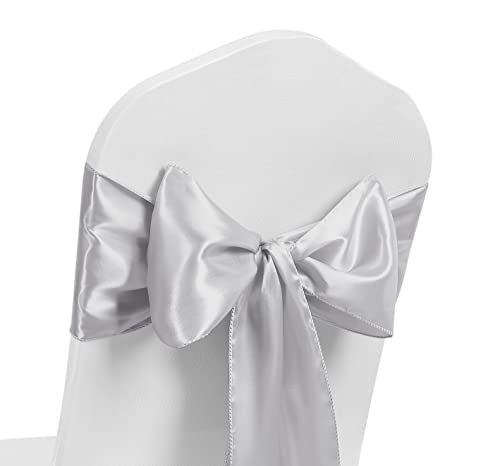 Satin stol skärp bredd FULLER BOWS stol band rosett baksida slips band bröllop bankett dekoration (silver, 50)