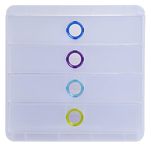 Exacompta - Ref 310399D - BIG-BOX Chromaline - 4-facks piedestal för A4+ format - Utvändiga mått: djup 34,70 x bredd 27,80 x höjd 26,70 cm - Genomskinlig kristall/harlekin