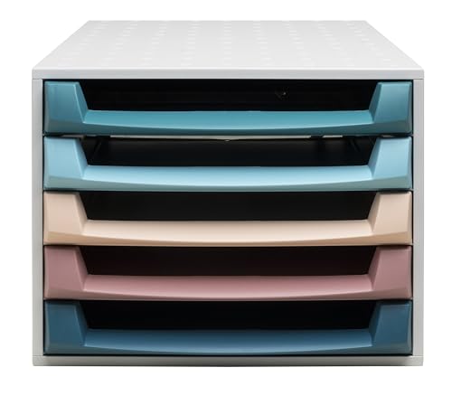 Exacompta - Ref. 221606D - THE BOX Skandi - Lådbox med 5 öppna lådor för A4+ dokument - Yttermått: Djup 38,70 x Bredd 28,4 x Höjd 21,8 cm - Assorterad
