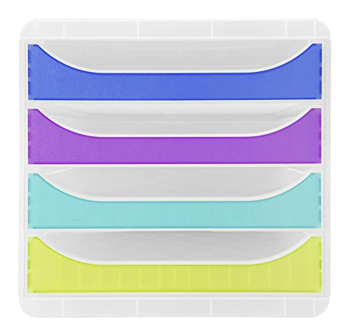 Exacompta - Ref 314399D - POP-BOX - Låda med 4 stängda lådor för A4+ dokument - Yttermått : Djup 34,70 x Bredd 27,80 x Höjd 26,70cm - Chromaline 4 sorterade färger