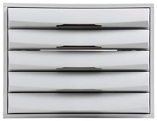Exacompta - Ref. 222040D - THE BOX - 5-facks stängd piedestal för A4+ dokument - Utvändiga mått: Djup 38,70 x Bredd 28,4 x Höjd 21,8 cm - Ljusgrå färg