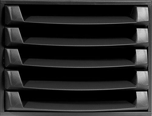 Exacompta - Ref 221014D - THE BOX - Lådbox med 5 öppna lådor för A4+ dokument - Lådorna glider perfekt - Utvändiga mått: Djup 38,70 x Bredd 28,4 x Höjd 21,8 cm - Svart