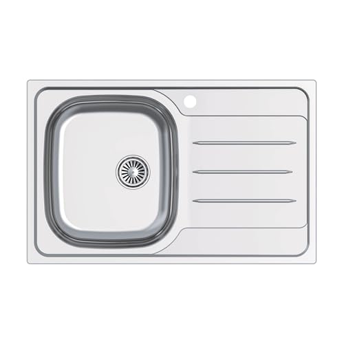 Edesa Diskbänk för kök över bänkskiva 1 fyrkantig hink 1 avlopp vindflöjel SE 79 cm 77 x 48 cm rostfritt stål djup 18 cm absorberande botten tillbehör ingår färg grå