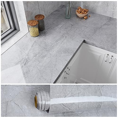 VEELIKE Grå marmortapet självhäftande kontaktpapper marmor klibbig baksida plastrulle vattentät kök bänkskiva täckning badrum bänkskiva tjockt foderpapper för väggar vardagsrum 40 cm x 300 cm