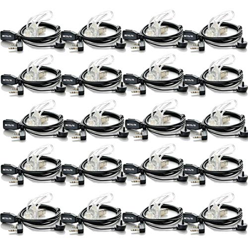 Retevis Radioapparat headset 2-stifts hörlurar med ljudslang kompatibel med Baofeng UV 5R 888S Walkie Talkie RT24 RT27 RT617 RT622 Kenwood Nestling radioapparater headset med mikrofon (20 STK)