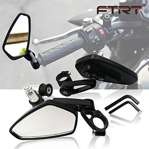 7/8" Universal Motorcycle Bar End Rear View Mirror compatible with YZF R1 R6 FZ07 / GROM CB500F/ NINJA 650R Z125 Z7500 Z900 ER6N ER6F VERSYS1000/ DL250 DL650 DL1000, Black