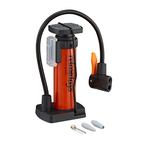 Relaxdays Fotpump, alla ventiler, 3 tillbehör, för cykel, bollar, 7 bar högt tryck, pedalpump, HBT: 17,5 x 9 x 7 cm, röd