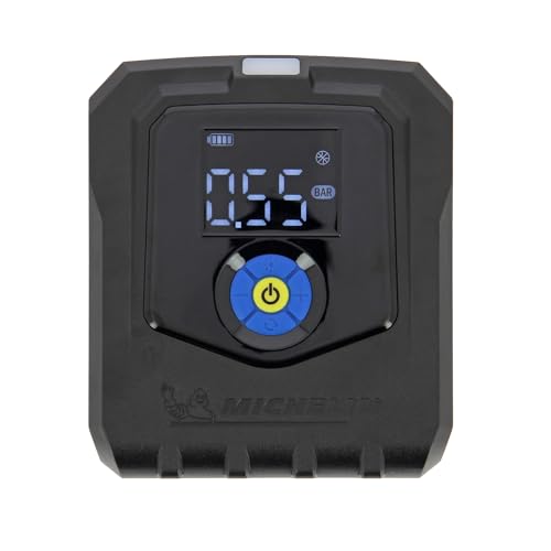 MICHELIN 009543 Pro trådlös luftkompressor - bärbar elektrisk uppblåsare 10 bar - flöde 19 L per min - litiumbatteri 11,1 V - programmerbart tryck - lampa - idealisk bil, motorcykel, cykel, camping