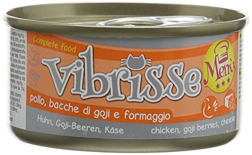 Croci Vibrisse våtfoder för katter, kyckling, goji bär och ost, helfoder med järn, vitaminer och mineralsalter, 24 burkar på 70 g