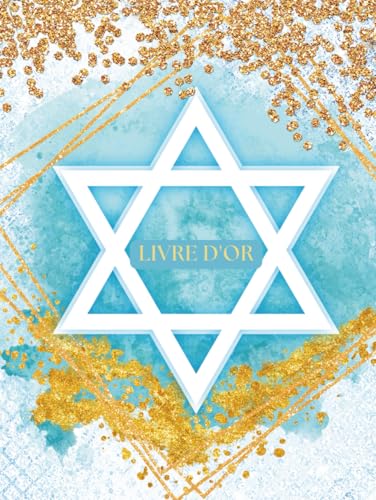 Livre d’or Bar Mitzvah: Pour célébrations juives : mariage, naissance, souvenir - 102 pages – Grand format A4 rigide - Etoile de David, bleu, blanc et doré