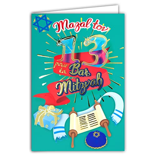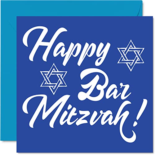 Bar Mitzvah-kort för pojkar och honom – Happy Bar Mitzvah – Mazel Tov, lycka till grattis-gåvor, bar Mitzva-gåvor för pojkar, 145 mm x 145 mm judiska gåvor gratulationskort fladdermus Mitzvah-kort