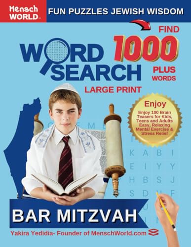 Find 1000 Plus Words BAR-MITZVAH Word Search Large Print Mensch World Fun Puzzles: Enjoy 100 Brain Teasers for Kids, Teens and Adults - Easy, Relaxing Mental Exercise and Stress Relief