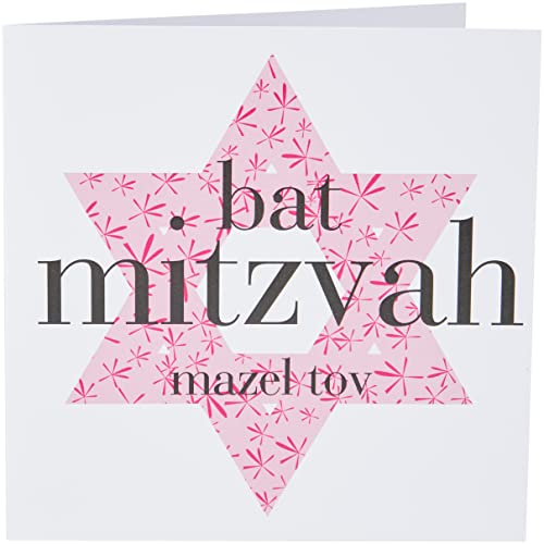 Fladdermus Mitzvah-kort för flickor henne – Zentangle Davidsstjärna – Mazel Tov, lycka till gratulationsgåvor, fladdermus Mitzvah-gåvor för flickor, 145 mm x 145 mm judiska gåvor gratulationskort bar Mitzvah-kort