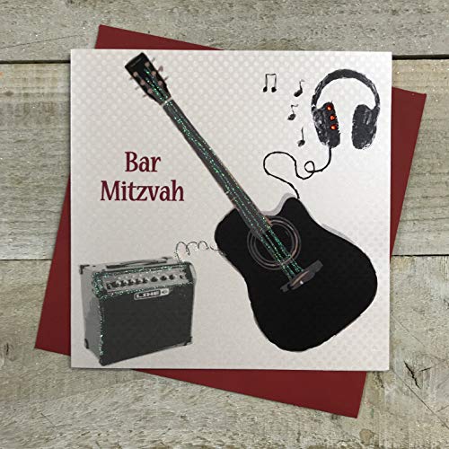 Vita bomullskort gitarr, handgjord bar mitzvah kort, JESB52
