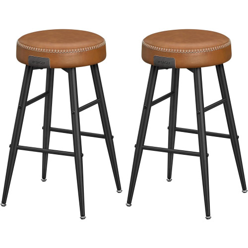Vasagle Ekho Collection Set Of 2 Bar Stools Kitchen Chairs Faux Leather With Stitching Mid Century Modern Style 66 cm High Home Bar Dining Room Easy Assembly Ink Black Lbc086b01 45x38x66cm