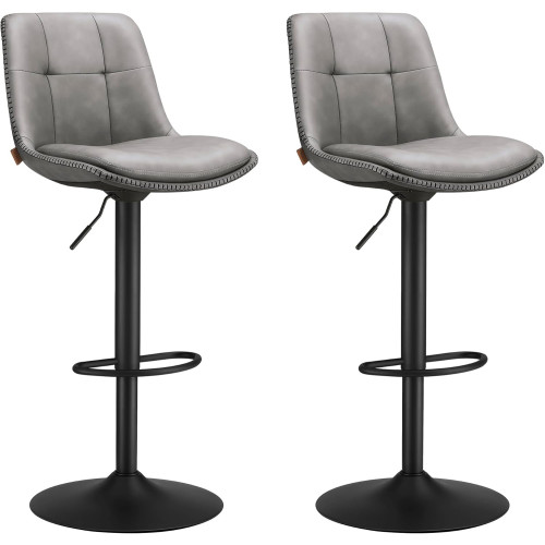 Vasagle Ljb095g01 Bar Stools Set Of 2 Bar Chairs Height Adjustable Rotating Kitchen Stools Quilted Pu Cover With Backrest And Footrest Dining Counter Steel Dove Grey 43x48x93-114cm