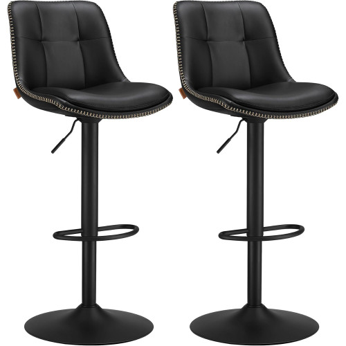 Vasagle Ljb095b01 Bar Stools Set Of 2 Bar Chairs Height Adjustable Swivel Kitchen Stools Quilted Pu Cover With Backrest And Footrest Dining Counter Steel Ink Black 43x48x93-114cm