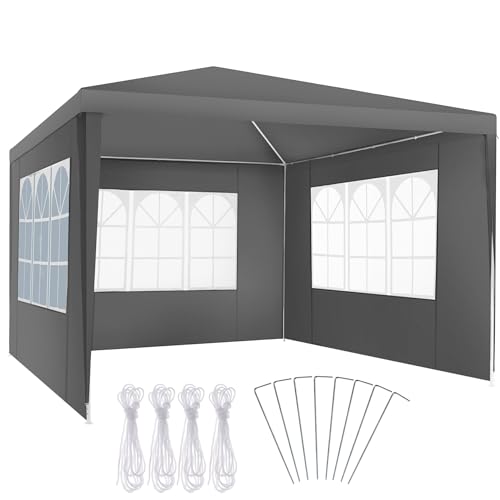 tectake® Paviljong 3x3m med Sidopaneler, Vattentät, UV-Skydd, Partytält 3x3 m, Stabil Stålram, Snabb Montering, Inkluderar Spännlinor och Pinnar, Perfekt för Trädgårdsfester, Camping - Grå