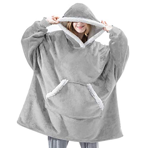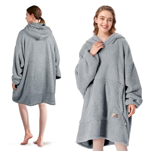 IvyH Överdimensionerad huvtröja sweatshirt filt, bärbar sherpa-filt huvtröja långärmad supermjuk varm huvtröja en storlek passar män kvinnor flickor pojkar unisex (ljusgrå)