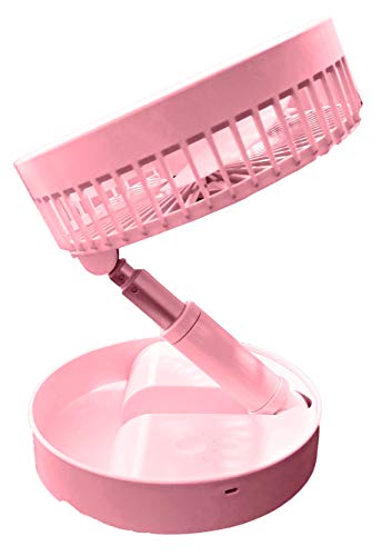 JISULIFE Bordsfläkt tyst, minifläkt batteri uppladdningsbar, 180° vikbar bärbar fläkt liten, 4 hastigheter justerbar för hemmakontor resor – rosa
