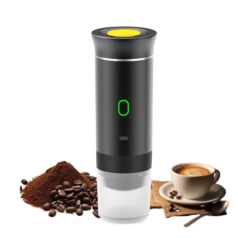 HOTUT Bärbar espressomaskinare, 19 bar tryck resa kaffebryggare, 12 V batteridriven extra liten espressomaskin, en knapp användning